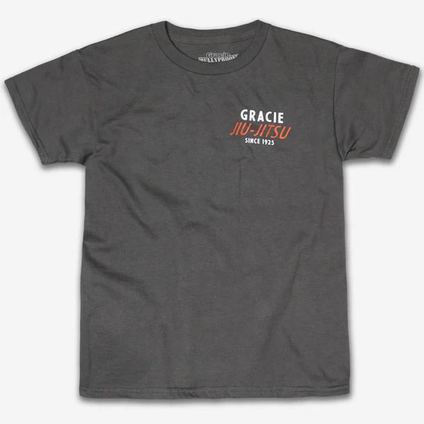 The Charcoal Rio Tee features a minimal front chest print and a bold back graphic highlighting Rio de Janeiro and the founding year of Gracie Jiu-Jitsu. The charcoal heather fabric offers a versatile, everyday look that pairs easily with training or casual wear.