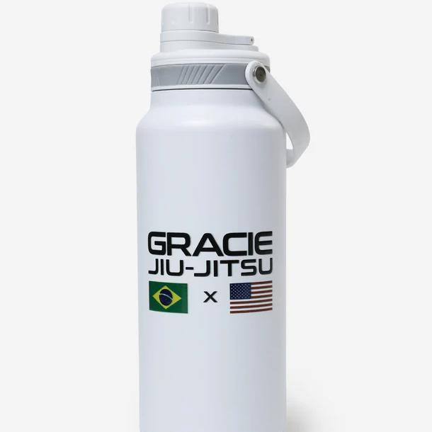 The Flag Water Bottle celebrates the global journey of Gracie Jiu-Jitsu and unites Brazil, the birthplace of jiu-jitsu, with the United States, where the art evolved and expanded worldwide. This stainless steel, double-wall, vacuum-sealed 33 oz. bottle keeps your drinks cold during training, competition, or life on the go and is perfect for dedicated jiu-jitsu athletes.