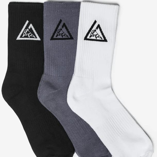 The Triangle Socks are built for all-day performance and comfort. Constructed with a breathable cotton blend and reinforced heel and toe, they’re designed to handle daily wear without losing shape. A ribbed upper provides a secure, stay-put fit, while moisture-wicking fibers help keep your feet dry.